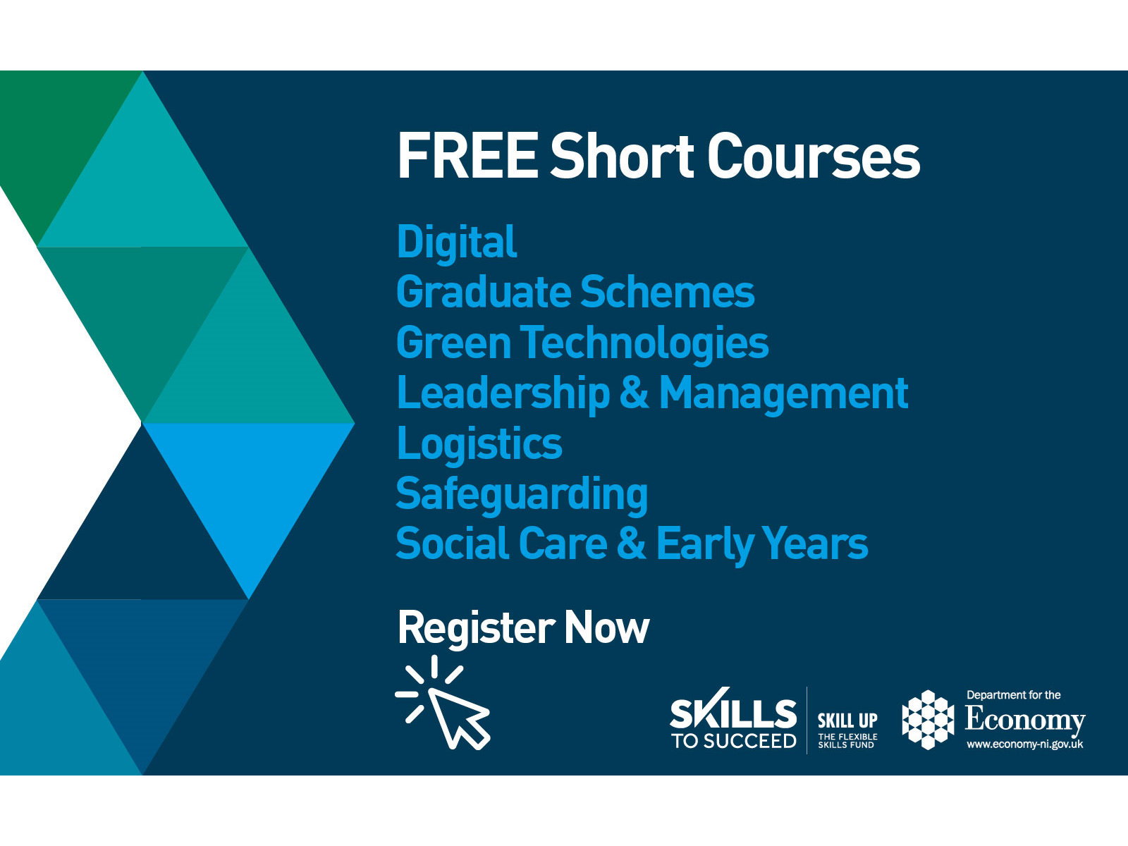 Find the right course for you! Find a Course Search School Leavers Higher Education Traineeships Adult Learners Apprenticeships Education in the Community Are you a School Leaver? Find out more Interested in Higher Education? Find out more Interested in a NI Traineeship Find out more Never too late forAdult Learning Find out more Earn while you learn with anApprenticeship Find out more Let us come to you!Community Education Find out more