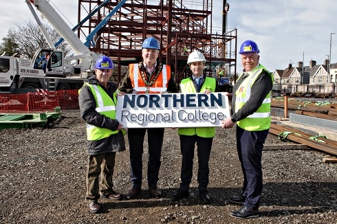 The Mayor of Causeway Coast and Glens Borough Council and the President of Causeway Coast Chamber of Commerce were among local stakeholders invited to view progress on the construction of Northern Regional College’s new Coleraine campus. Fully funded by the Department for the Economy, the overall cost of the new campus at Union Street is £40 million, forming part of a £85 million capital investment programme to provide new campuses for the College in Coleraine and Ballymena. Heron Bros is the main contractor for both projects.