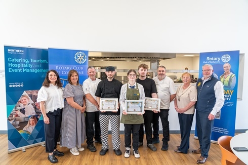Three talented students from Northern Regional College have been named winners of the recent Rotary Club Chef Competition, held at the College’s Coleraine campus last Thursday, following a competitive event that brought together aspiring chefs to showcase their culinary skills and professionalism.